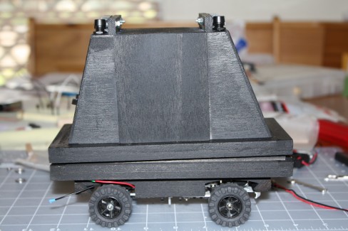 The shell is made from balsa and spruce that I have lying around from some of my other various hobbies. The plan is an "Mark 1 Eyeball" design based on looking at the one 3/4 profile image that shows up in my teaser video. A coat of black krylon spray paint gives it that "Imperial" look.