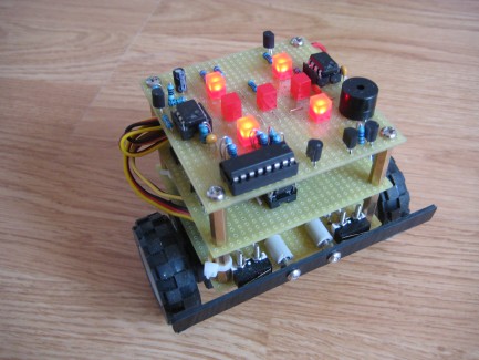 - Actuators / output devices: beeper, 2 continues rotating servos, 7 LEDs