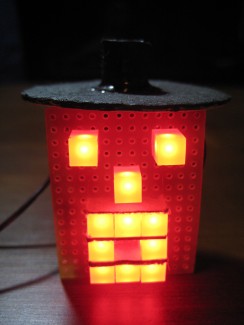 No, wrong thought --- it's not a Jack O'Lantern robot. Mr. Sunsmile changes his facial expression according to the brightness of the ambient light. A LDR is hidden in his top hat. The different facial expressions are shown below: