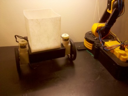 I just finished my very first robot today. Not having a Ping ultrasonic sensor I searched my parts box for ideas on how to avoid objects. After having realized that I couldnt avoid objects I figured the bot could run into an object, it just needed a way to eventually get around it. I reused some mouse buttons, an Adafruit motor shield and an Arduino Uno. I also used a Precision mandrel bent self suspensioning paper clip/ mouse wheel combo lol ;P I call it Stinkbot because I used the base of a Febreeze airfreshener. This little guy just drives around making my house smell great :)