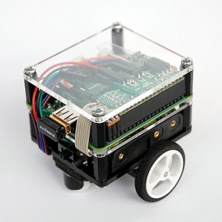 PiBot-A is a small, autonomous robot based on Raspberry Pi Model A+. Varying sensors can be mounted on its front to implement different behaviors like obstacle avoidance, line following or maze solving (see videos).
