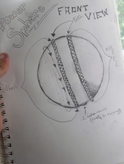 So here are some rough sketches of my first robot. I'm going to order the parts today, all of which are in the start here robot:) But I'm going to change it up a bit and see if i can put a few bumper sensors in. It's going to be a silver sphere, that I'm going to cut into three, I will use the outside pieces as wheels and then i will put two very small wheels perpendicular to those on the bottom of the middle section, all of the wires and motors and power supply will go inside of it, so it should be very clean looking from the outside:)