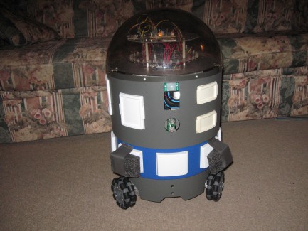 navigates around using sonar and IR rangers, speaks/sings, intruder detection
