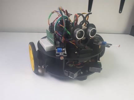 First I press a button to activate the obstacle detection mode, then I press the stop button, after that I activate the light following mode, stop, then the light avoiding mode (that will be replaced by the line following mode shortly).