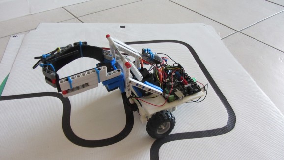 The arm is designed in such a way that the can will always be level, no matter what height the arm is at. This design also uses 2 servos, this is not possible with an NXT and was the main reason that I built a custom robot. It also has enough pins for many, many more sensors than the NXT.