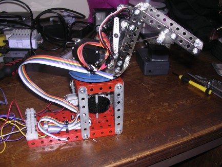 I'm yet to put any kind of grabber on it, and the pan still needs some work. but I think its neat enough to warrent posting online. Actally, its been this state for a while, and i've had it on my blog here: http://diydata.wordpress.com/2008/12/31/simple-meccano-robot-arm-redone/ for a while