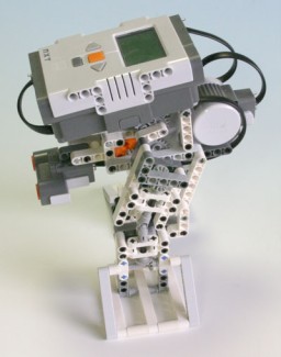 It Drags it's feet, the soles are almost non-skid the brackets along the weather. So, the robot walks straight