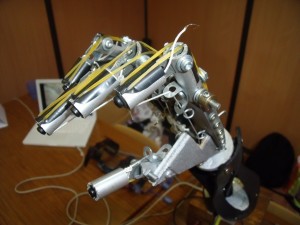 This robotic hand can be controlled by a sensor-glove or a graphic program.