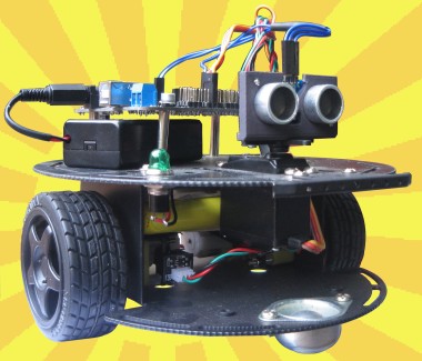 here is a pic of my robot, it's based on a DF Robot RoMeo board with a parallax PING ))) sensor.
