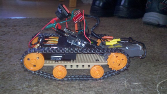 Today I added the capability of a bump sensor to be installed, however in practice my simple bent 20ga wire bump sensor does not, unless I press it the right way, actually work. My plan is to make a dual bump sensor on the front so it knows if the bump came from the left or right and can respond accordingly, although ultimately I hope to achieve navigation via an infrared distance sensor or ultrasonic distance sensor, and have the bump sensors for things the aforementioned sensors may not "see." This is my first robot project, and other than one of those learning circuit kits when I was 13 my first foray into electronics.