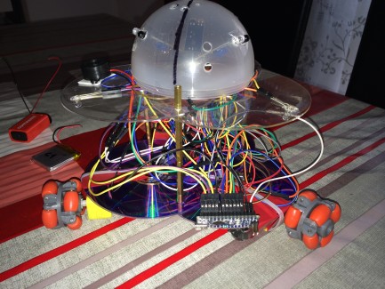 This is intended to be a Self Preservation Robot. The goal is to mimic some of the animal behaviour that we see in Nature when it comes to the self preservation instinct. The approach will be to mimic some self preservation mechanisms except, the fighting reflex. The robot will measure distance via IR sensors and when an object approaches less than 20cm, it will light an led, sounds an buzzer and finally run in the opposite direction of the obstacle detected. The led is intended to mimic the puffing behaviour of some animals, that pretend to be bigger and more impressive. Then the buzzer is intended to mimic the aggressive sound that some animals do like the rattle snake Finally the fleeing, the most common of the self preservation strategies in Nature, runaway before becoming someone's lunch :) This will also be an attempt I'm my first omni directional robot so it can flee immediately in any direction. As you can see it still needs some tuning in the angle of the wheels and the code could probably be improved. Hope you guys like it I enjoyed a lot making it.