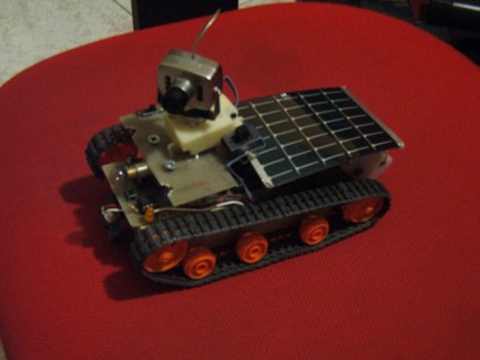 this is a simply sicilian robot what: Navigate around via infrared and solar panels, lighting with lamp when it's dark, send image from motorized wireless camera, charge battery from solar panel.It's autonomou or, if you want, controlled by remote control wired. Solar panel provides just 6V and 50mA. Banaly, if you want to charge four 1.2V and 500mAh batteries (for example AA Ni-MH) it takes 10hours to finish complitely the re-charge.