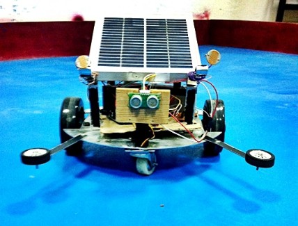 W.A.R --- Wandering Autonomous robot is a socially interactive robot which shows different behaviours under different circumstances. The main behaviour of this robot are: * Obstacle avoidance * Light following * Food seeking (Light source in this case) * Prey & Predator behaviour * S.O.C - State of charge monitoring * Charging - through solar panel 1--- So here it is how its gonna work, initially when u gonna switch on this robot it will scan and mapp the arena with help of SONAR and servo then ...