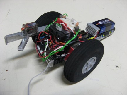 Since i changed from PIC to Atmega, I remade this bot's whole brain. H-bridges and motor controllers were a headache so I changed motors to servos. Also now i have new power source, 5x AA NiMh regulated to 5V for electronics. Hmm. New pictures soon.