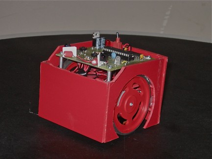 My second scratch built robot. I wanted to try and build a functional sumobot and this is what I came up with. Its not the most complicated or finally engineered robot but more of a proof of concept. It uses a PIC18f252 on a custom home made double sided pcb board.