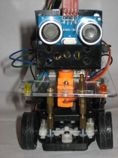 This has been long time coming because I have so little time to work on this hobby, but here it is. Not very elegant, but it's been a fun learning experience. I took a cheap remote control car I picked up at garage sale and hacked into to to turn it into a robot. Easier process than I thought it would be once I found the datasheet on the reciever chip in the car. The initial version of the robot is built and I'm about to start the coding for it. At this stage it will avoid abjects and send video of it's perspective of the world to a laptop. Future upgrades will be a smiling/frowning LED mouth and an LCD screen. I'd like the LCD screen to show the distances the SR04 is measuring and show the resulting decisions the code is making and the actions it takes (turn, go straight, etc). I want to position the LCD on the body such that it can be read on the video. I've built a serial 16x2LCD, but want to get the base concept of the robot working before I integratd it in....But I get ahead of myself.