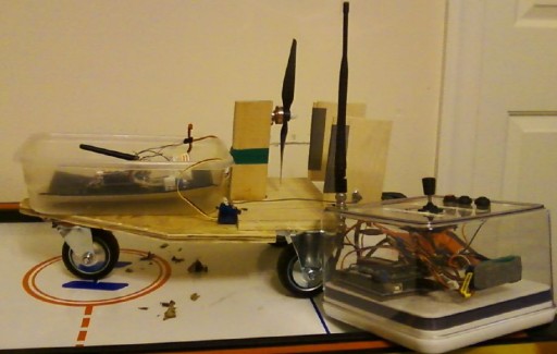 So I came up with the bright idea of using an airboat/hovercraft inspired design on wheels as a "boat emulator".