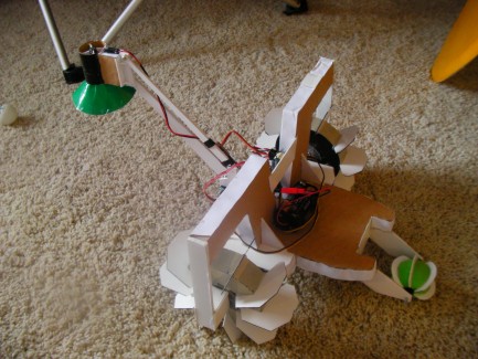 -Extremely lightweight. The main structure is honeycomb structured cardboard, which is stiff yet light. Electronics are RC airplane parts, wheels are foam, and other pieces are thin PVC sheets.