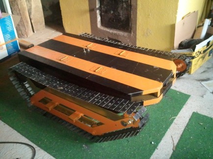 This is my tracked multi-purpose robot. It is powered by two DC motors and controlled via RF link (range 1km LOS) by a usb controller plugged into a custom transmitter.