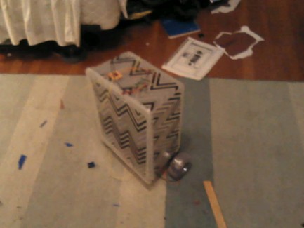 this robot going to have all kinds of gadgets and doors that can open on cammand. they will have stuff like: robotic arm, shocker,usb,port,dart shooter,lights, saw, lighter! he will roam and be controled mainly through voice. his head isnt on yet but its gonna be a similar box, but way smallar.