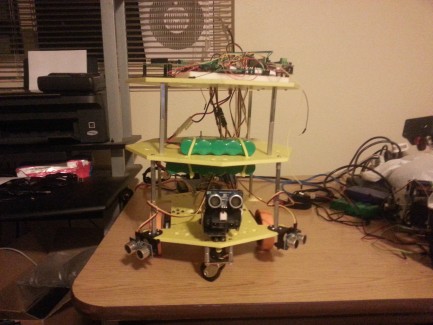 This is a complete rebuild from v1.x, as you can see. This robot is much larger, and much more complex than v1.x was. I designed the decks using 3D CAD and had them cut by a friend on his CNC.