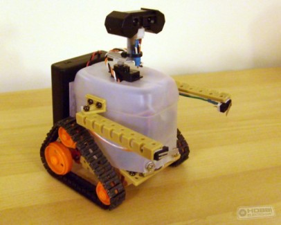 The robot is controlled with an Atmel ATMega8 running on internal oscillator at 1MHz. It uses 3 microswitches and a servo rotated Sharp infrared distance sensor to detect the environment. The AVR is programmed in AVR-GCC with WinAVR+AVR Studio.