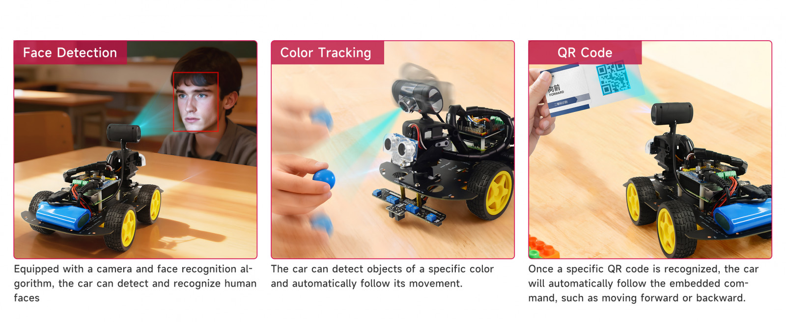 Raspberry Pi Vision Features: face detection / color tracking / QR code recognition