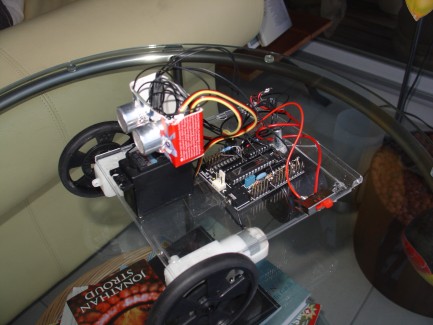 UPDATE: He's  back, and better than ever... the amazing Nick! * the crowd goes wild* I know, I've not been aktive on LMR for a while, had a lot of school-work and stuff, so I had no time. Well anyway, I've moved my robot onto a diffrent chaissis, (the other one broke) and added the servo and Srf005. I'm all done with building, but well, you know.... programing isn't my thing. But I'm giving it my all, and i should be done in... *he types something into a calculator* 17 Years!       -     ...